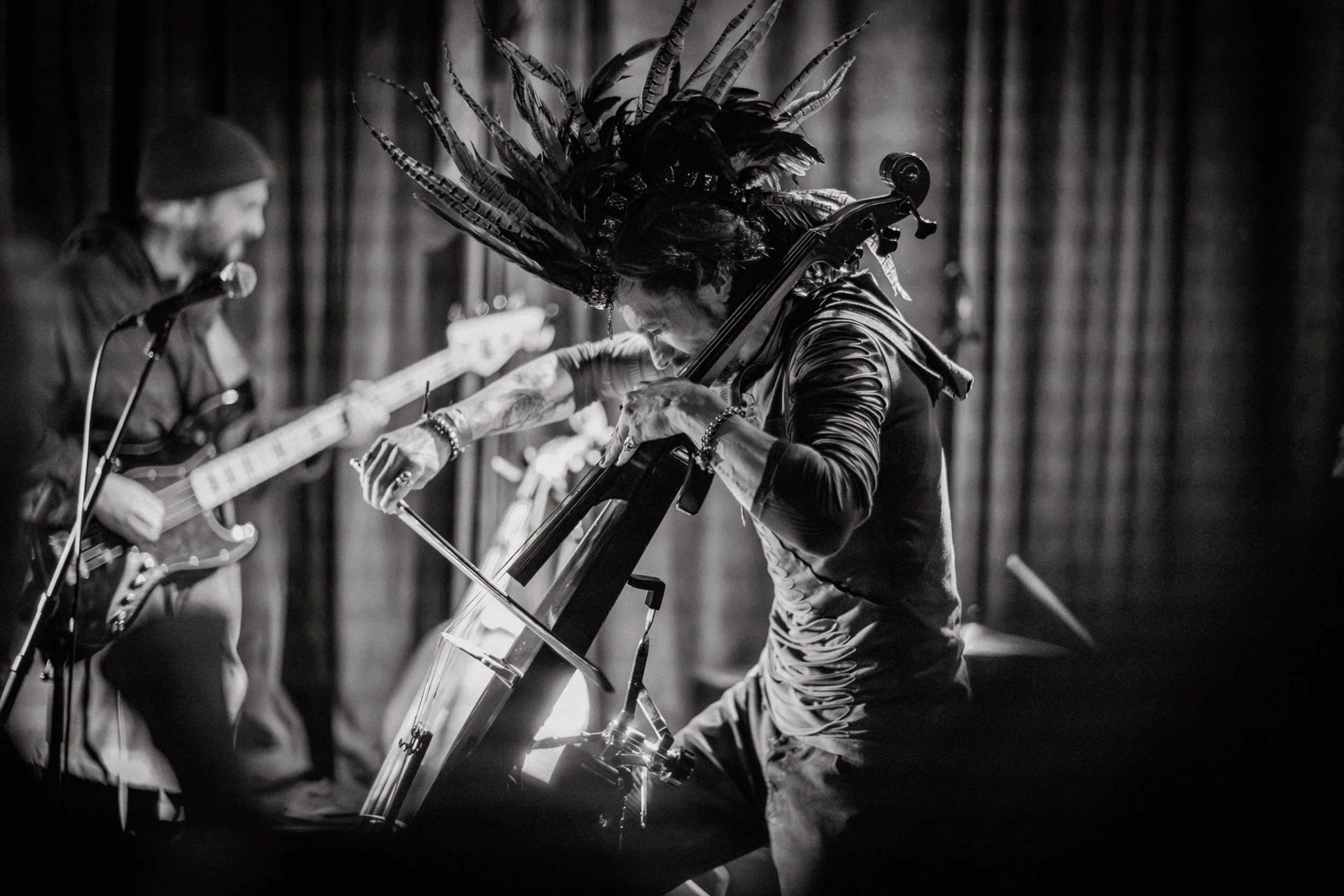 Spanning the intersecting realms of classical performance, sound design, punk philosophy and spiritual inquiry, cellist Ben Roberts creates immersive sonic rituals rooted in both orchestral tradition and experimental composition. His live performances weave modern understandings of frequency with ancient shamanic and Vedic principles, inviting audiences into a shared state of deep listening and transformation. Using cello, electric cello, drum machine and pedal boards, each unrepeatable set unfolds as a guided journey through resonance, intuition and release.