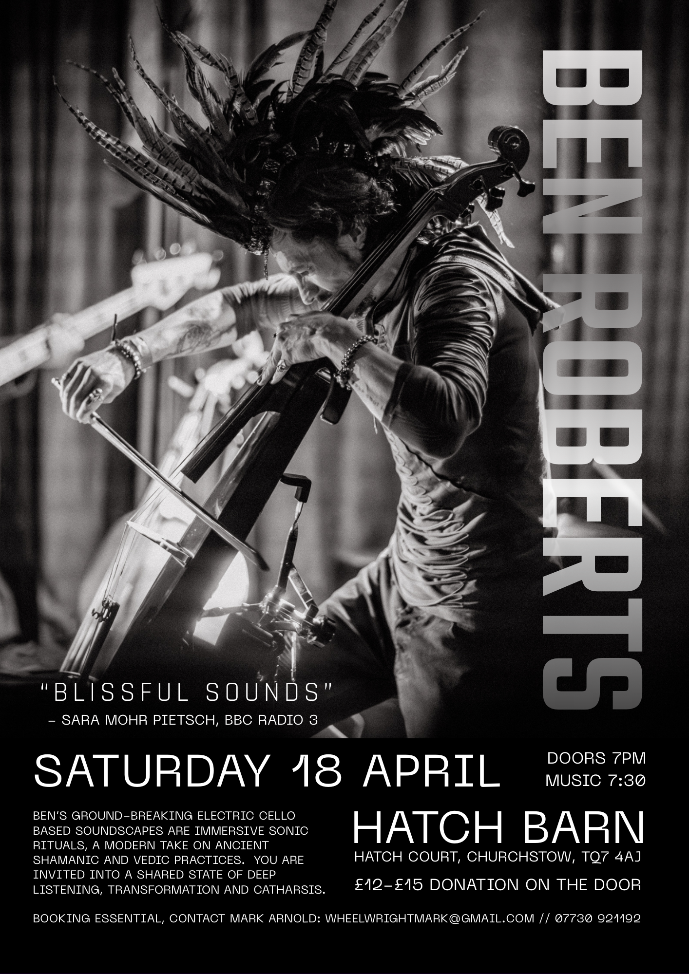 Ben’s ground-breaking electric cello based soundscapes are immersive sonic rituals, a modern take on ancient shamanic and Vedic practices. you are invited into a shared state of deep listening, transformation and catharsis.